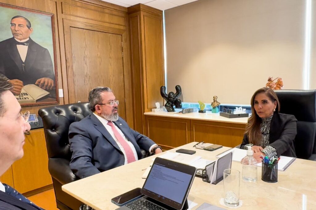 Como parte de una agenda en la Ciudad de México, la gobernadora Mara Lezama Espinosa y el secretario de Desarrollo Territorial Urbano Sustentable (SEDETUS) Armando Lara De Nigris, se reunieron con el titular de la SICT Jorge Nuño Lara, con quien revisaron diversos temas y también requerimientos que han emanado de las reuniones de seguridad del Aeropuerto Internacional de Cancún.